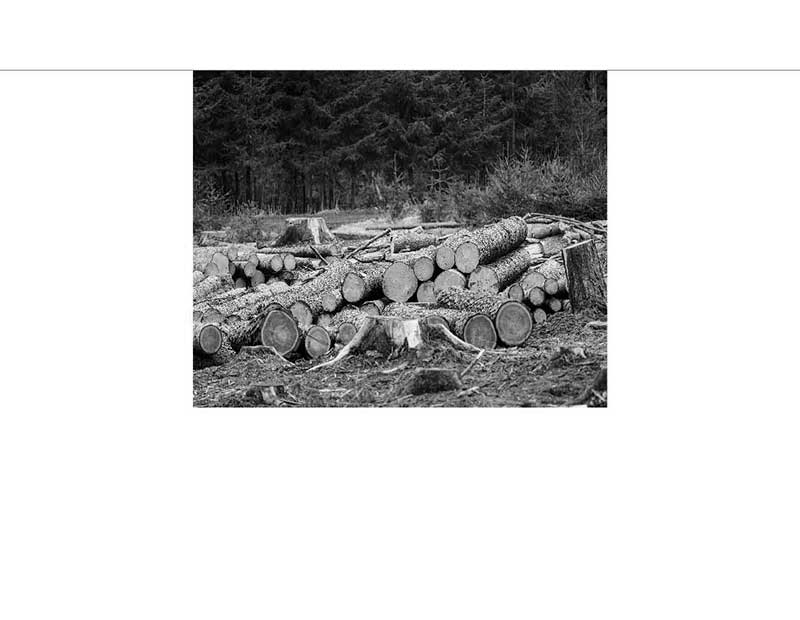 Badrückwand Alu gefällte Holzstämme im Wald 592 schwarz-weiß
