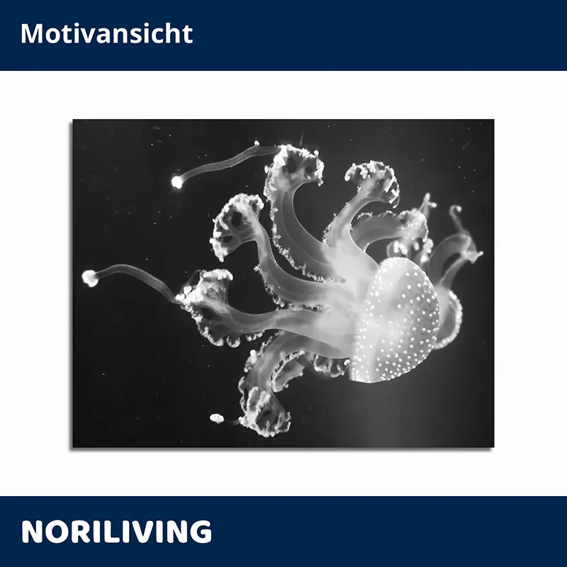 Produktinformationen "Badrückwand Alu weiße Qualle in dunkelblauem Meer 063 schwarz-weiß"