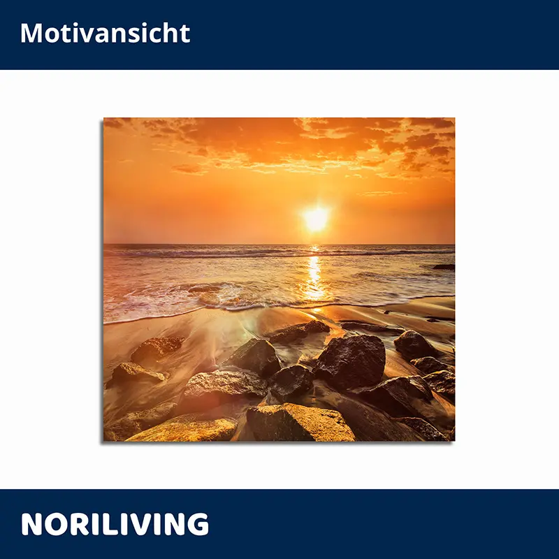 Produktinformationen "Badrückwand Alu Wellen und Felsen am Strand bei Sonnenuntergang 844"