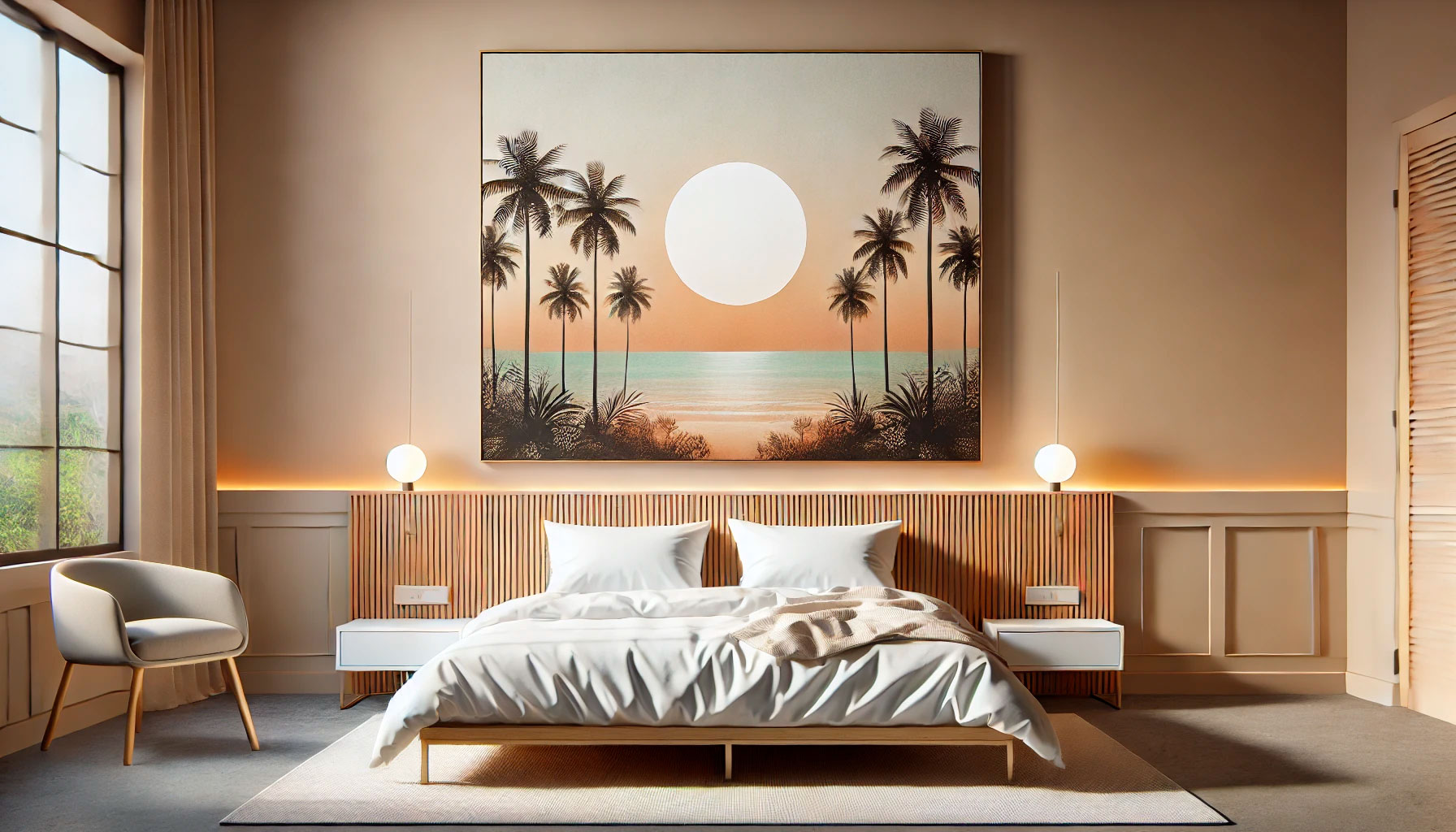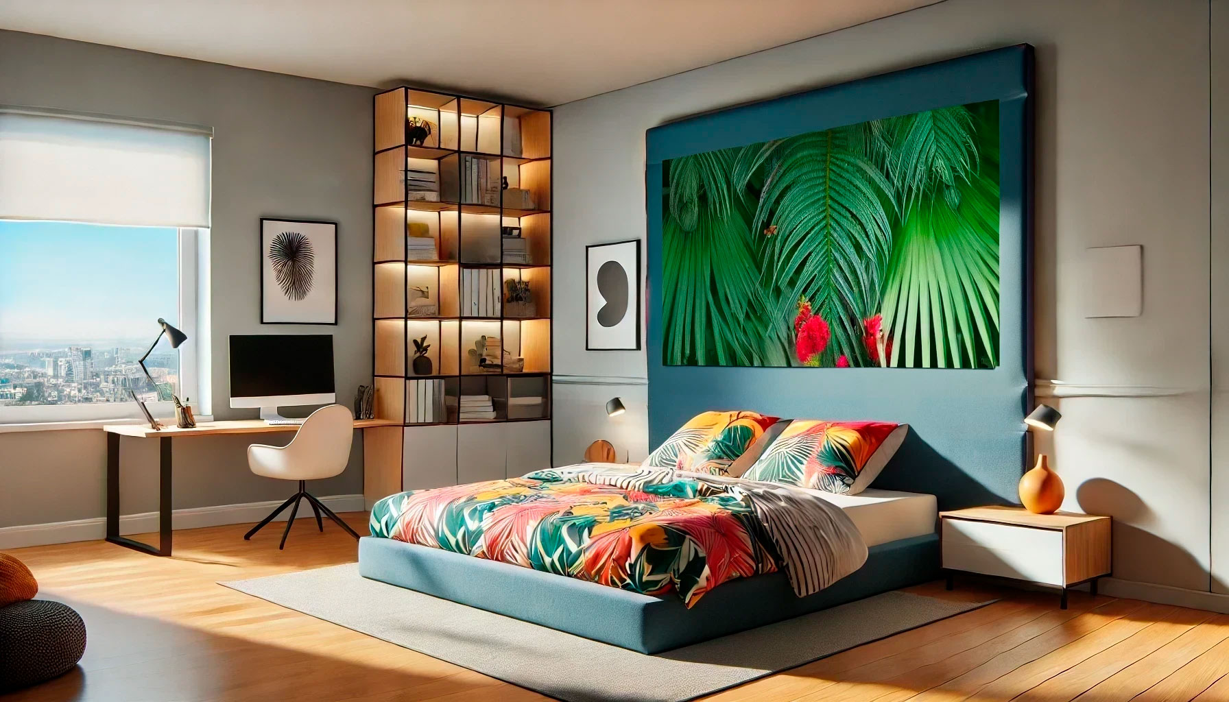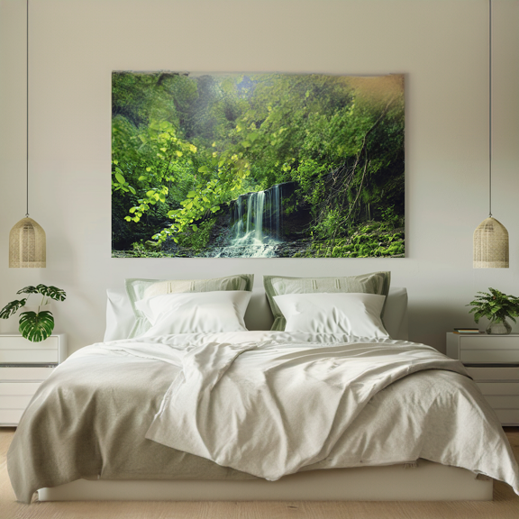 Beispielsweise kannst du in deinem Schlafzimmer ein beeindruckendes abstraktes Gemälde als Rückwand über deinem Bett platzieren, das den gesamten Raum dominiert und seinen Akzent setzt.