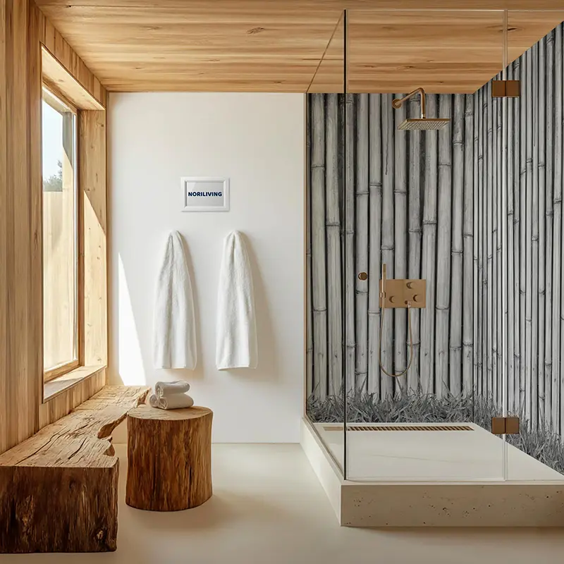Duschrückwand Aluverbund Bambus und Wiese 571 schwarz-weiß