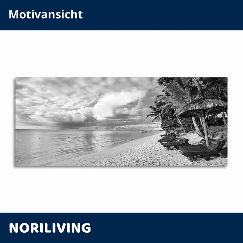 Produktinformationen "Duschrückwand Aluverbund Palmen am schönen Strand Mauritius 186 schwarz-weiß"