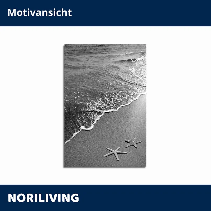 Produktinformationen "Duschrückwand Aluverbund Seesterne am Strand 077 schwarz-weiß"