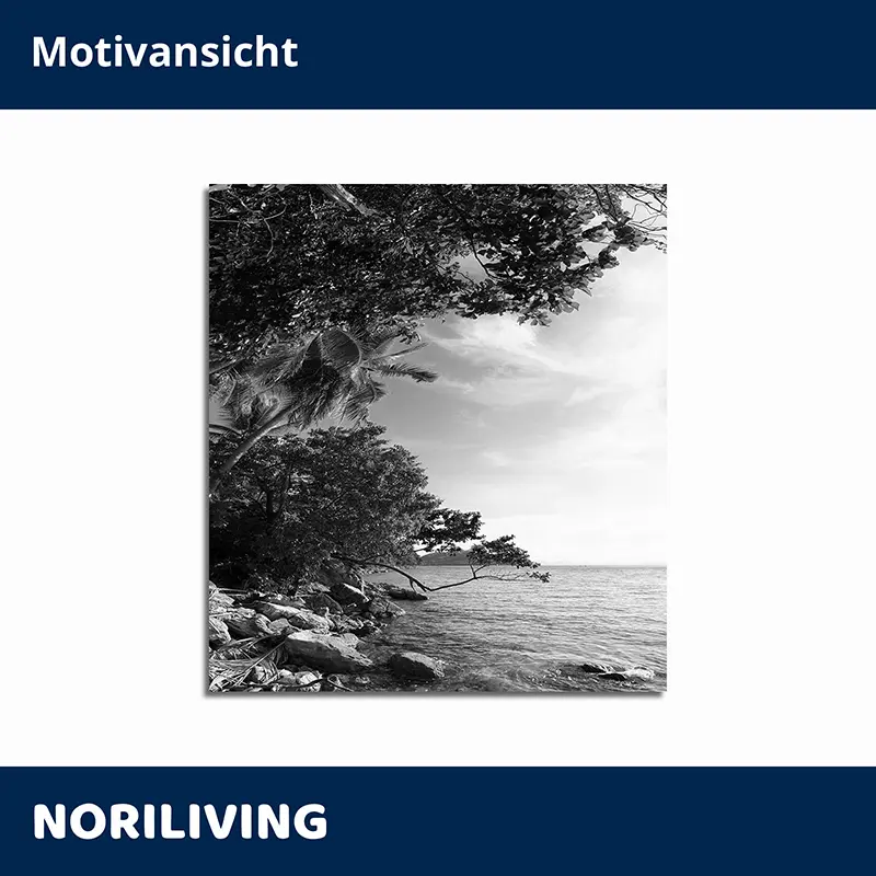 Duschrückwand Aluverbund Tropische Küste 616 schwarz-weiß