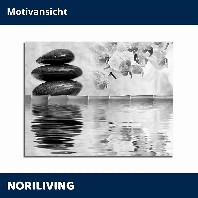Produktinformationen "Duschrückwand Aluverbund Zen Steine mit Orchidee und Spiegelung im Wasser 307 schwarz-weiß"