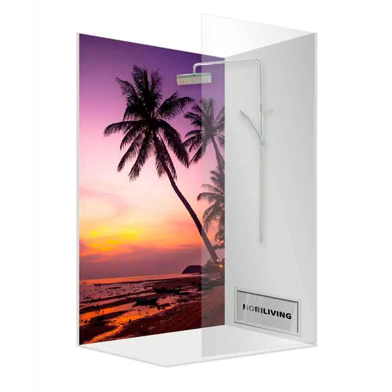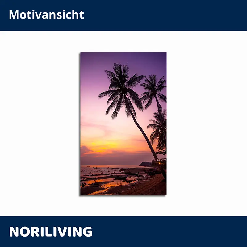Produktinformationen "Duschrückwand Einzel | Alu Palmenstrand bei Sonnenuntergang 889"
