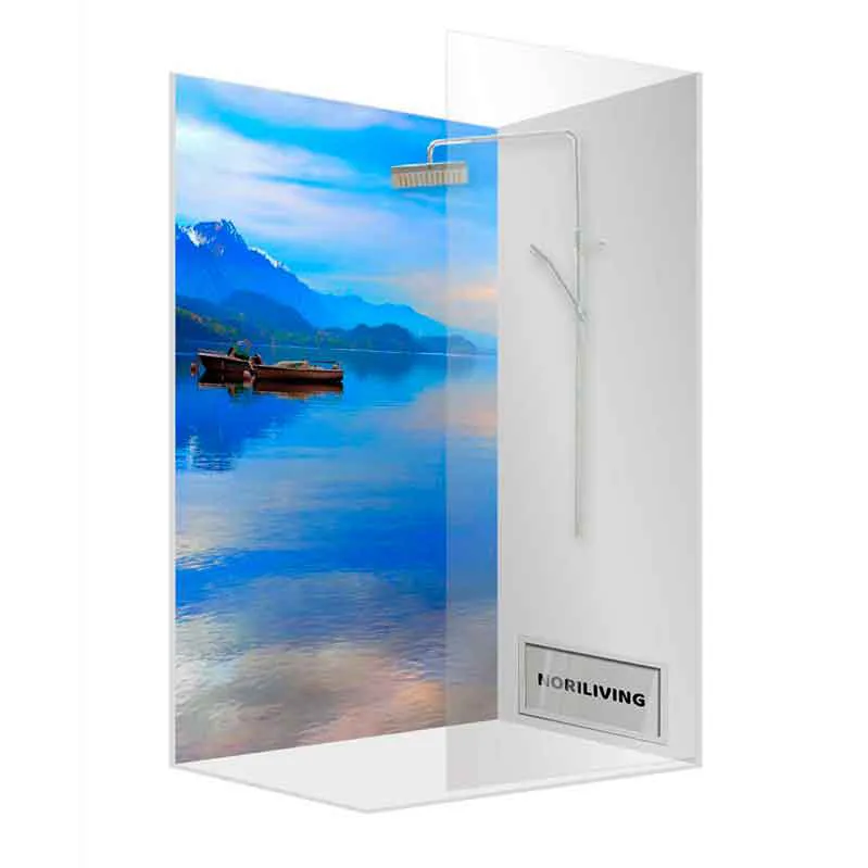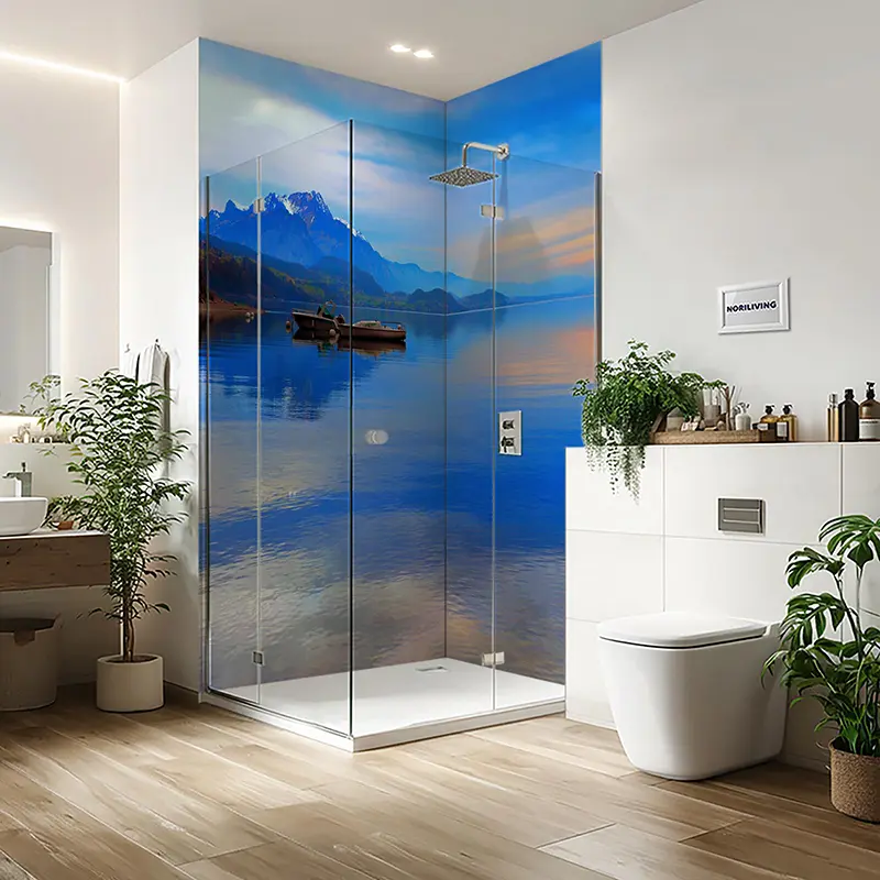 Produktinformationen "Duschrückwand Einzel | Ecke | Alu Boote im Bergsee 516"