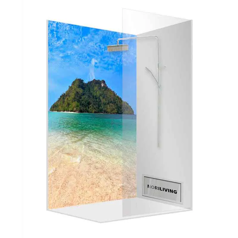 Duschrückwand Einzel | Ecke | Alu magische Insel in der Nähe eines Sandstrandes 218