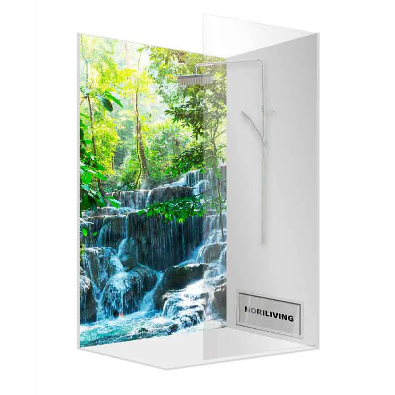 Duschrückwand Einzel | Ecke | Alu Wasserfall im Wald 082