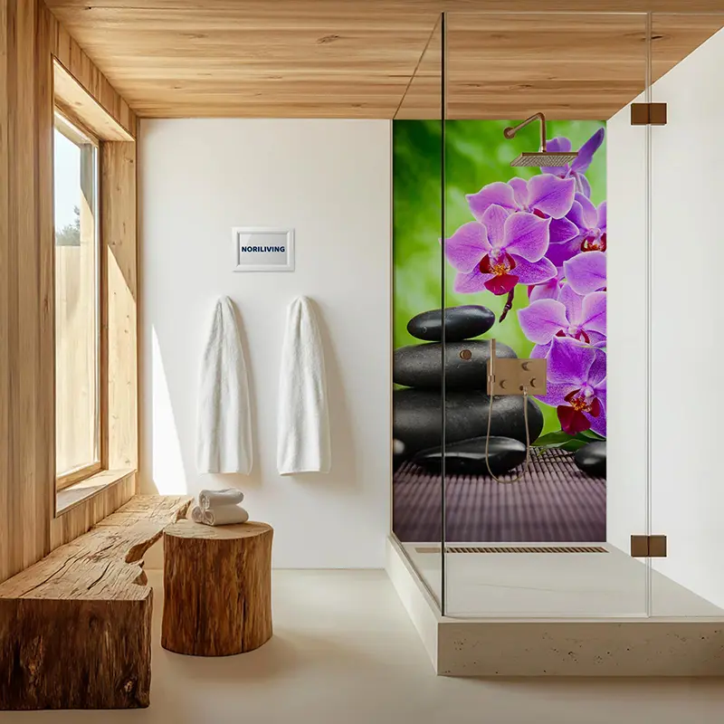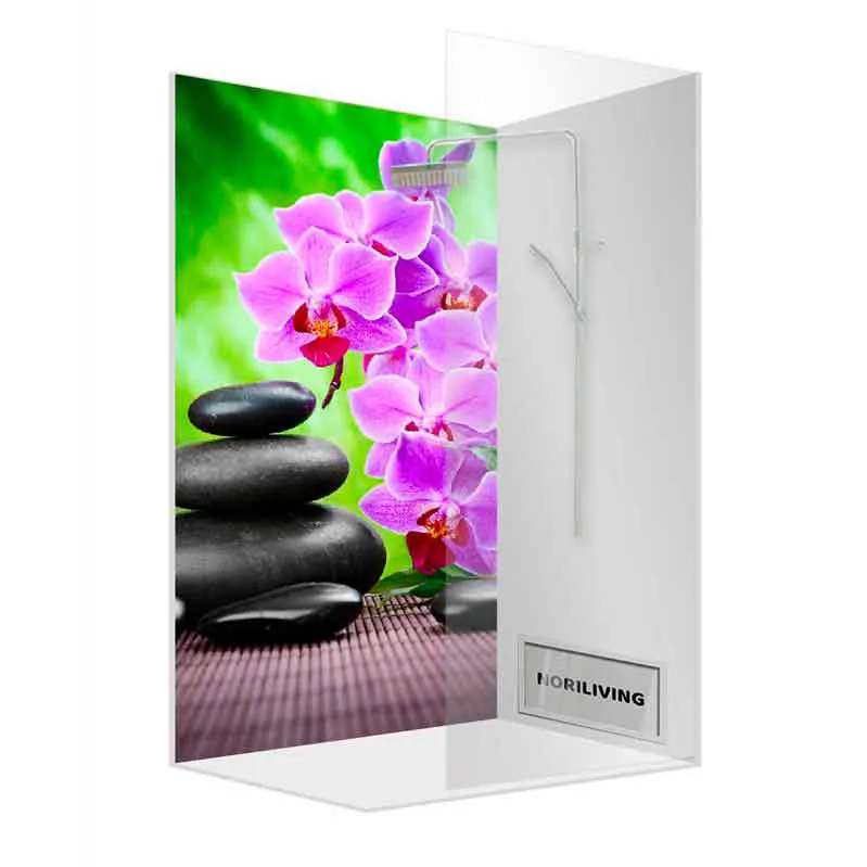 Duschrückwand Einzel | Ecke | Alu Zen Steine mit Orchideen 392