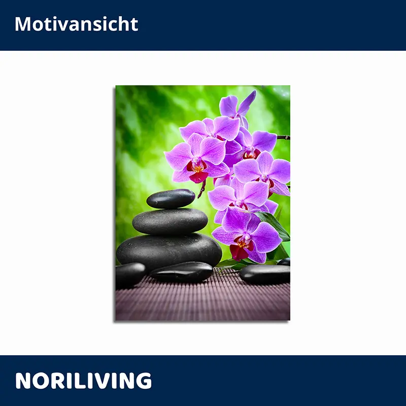 Produktinformationen "Duschrückwand Einzel | Ecke | Alu Zen Steine mit Orchideen 392"