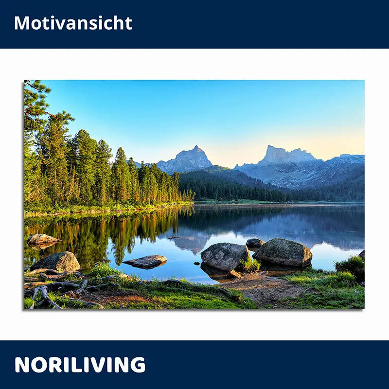 Produktinformationen "Duschrückwand Einzel | Ecke | Nische | Alu Bergsee mit Wald 453"