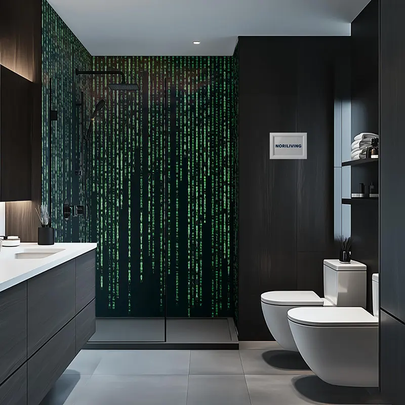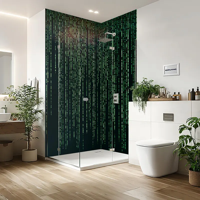 Duschrückwand Einzel | Ecke | Nische | Alu grünes Matrixthema als Hintergrund 934