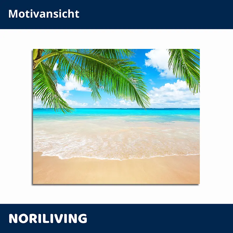 Produktinformationen "Duschrückwand Einzel | Ecke | Nische | Alu Kokospalmblätter mit Blick auf das Meer 845"