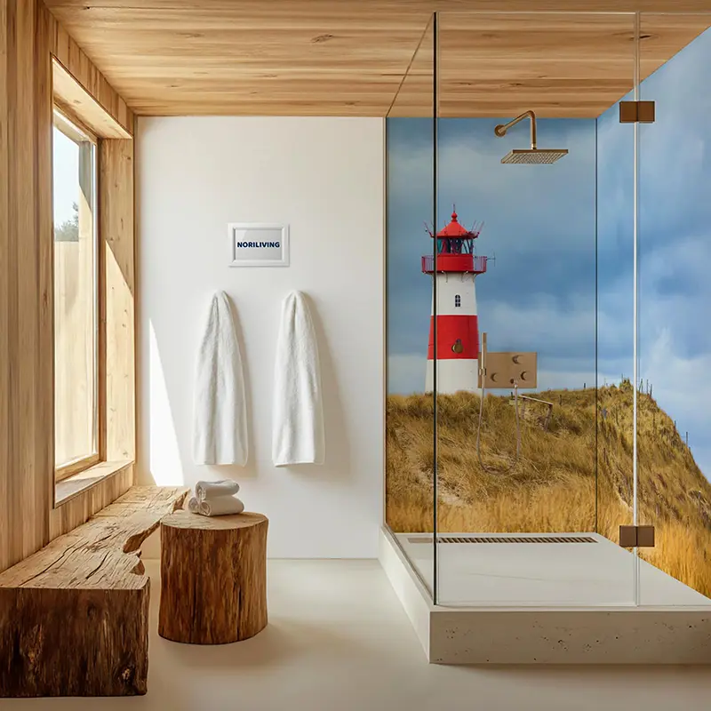 Produktinformationen "Duschrückwand Einzel | Ecke | Nische | Alu Leuchtturm von List auf Sylt Nordsee 809"