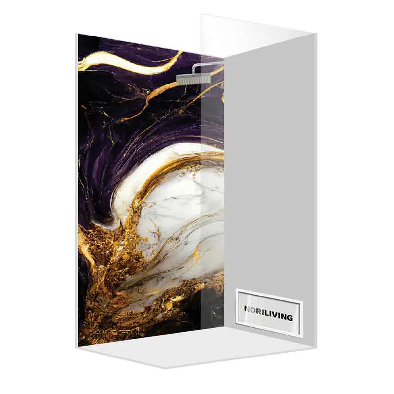 Duschrückwand Einzel | Ecke | Nische | Alu Marmor violett-weiß-grau mit goldfarbigen Einschlüssen 085