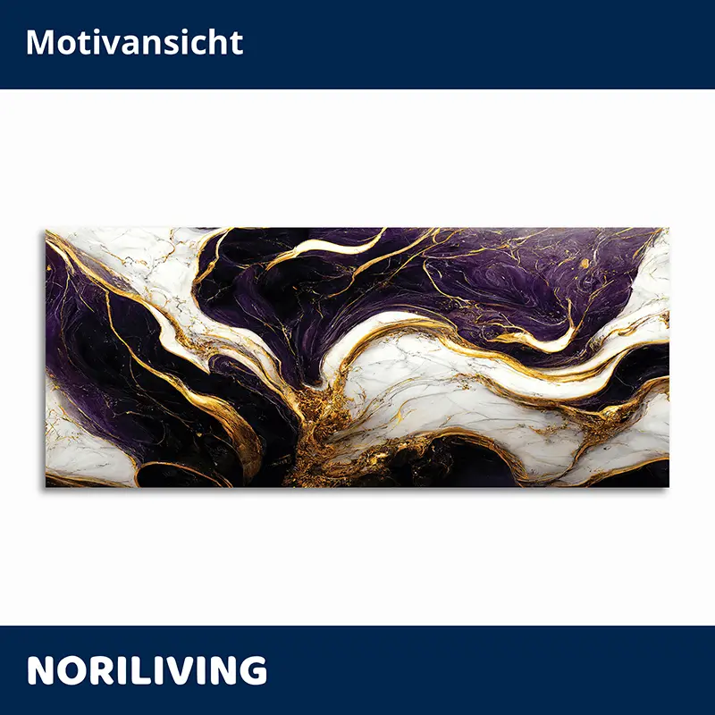 Produktinformationen "Duschrückwand Einzel | Ecke | Nische | Alu Marmor violett-weiß-grau mit goldfarbigen Einschlüssen 085"