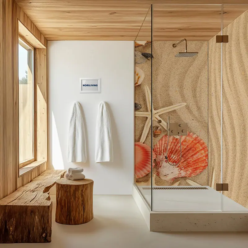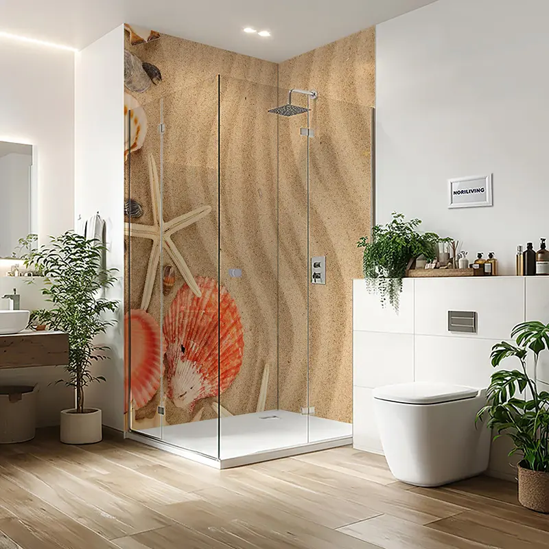 Duschrückwand Einzel | Ecke | Nische | Alu Muscheln im Sand 513