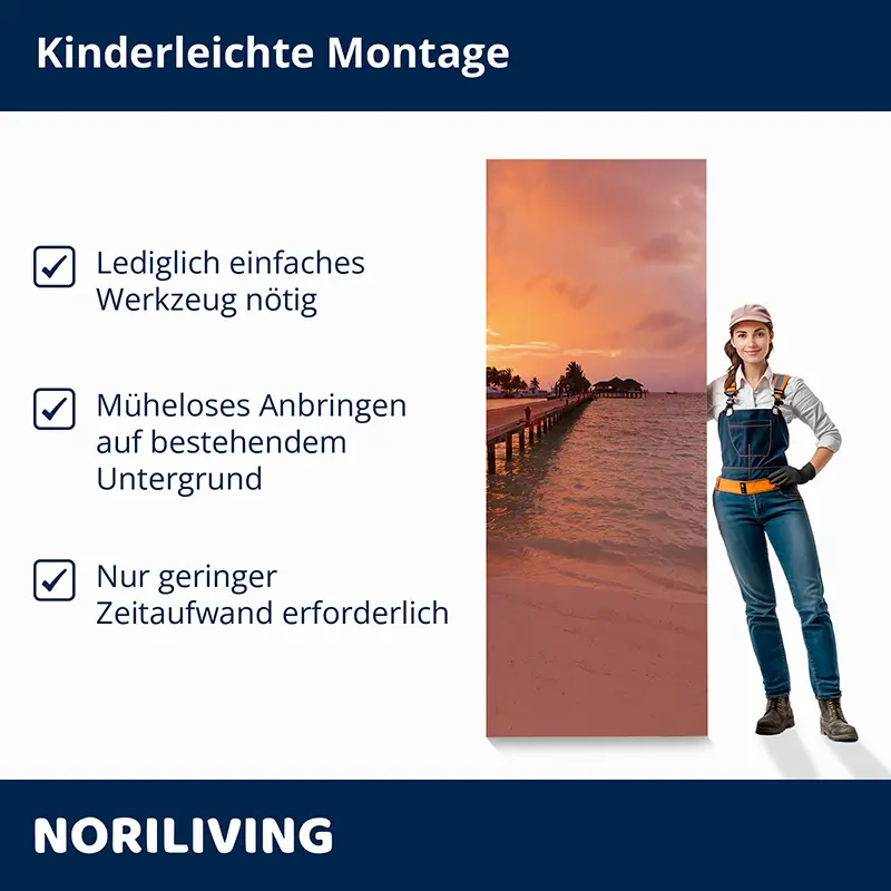 - Großflächige Anbringung – nahezu fugenlos