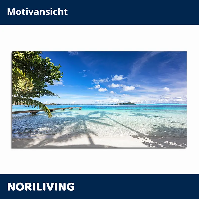 Produktinformationen "Duschrückwand Einzel | Ecke | Nische | Alu Strand von Bora Bora mit Steg ins Meer 008"
