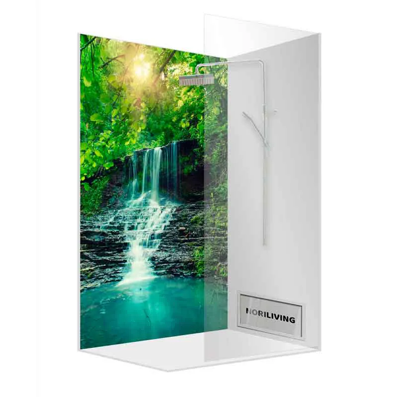 Duschrückwand Einzel | Ecke | Nische | Alu wunderschöner Bergregenwald-Wasserfall 948