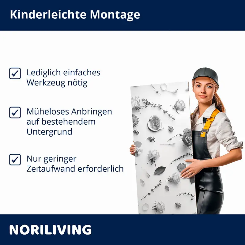 - Die Platten lassen sich auf nahezu jedem Untergrund befestigen. Wichtig ist, dass die Fläche eben und glatt ist. Bei Fliesen müssen vor der Montage Seifenreste und Verschmutzungen gründlich entfernt werden. Anschließend die Fliesen fettfrei reinigen und vollständig trocknen lassen.