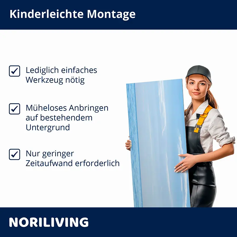 - Die Platten lassen sich auf nahezu jedem Untergrund befestigen. Wichtig ist, dass die Fläche eben und glatt ist. Bei Fliesen müssen vor der Montage Seifenreste und Verschmutzungen gründlich entfernt werden. Anschließend die Fliesen fettfrei reinigen und vollständig trocknen lassen.