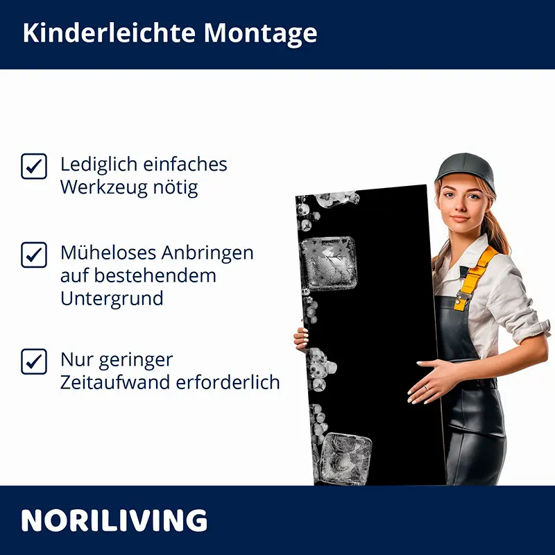 - Die Platten lassen sich auf nahezu jedem Untergrund befestigen. Wichtig ist, dass die Fläche eben und glatt ist. Bei Fliesen müssen vor der Montage Seifenreste und Verschmutzungen gründlich entfernt werden. Anschließend die Fliesen fettfrei reinigen und vollständig trocknen lassen.