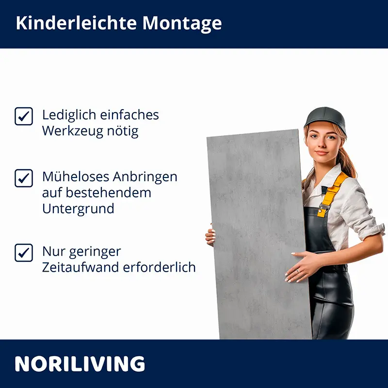 - Weniger Staub, Lärm, Schmutz und Abfall im Vergleich zur herkömmlichen Fliesenverlegung