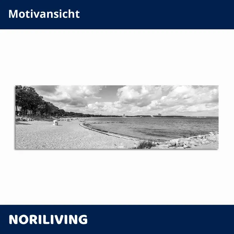 Produktinformationen "Fliesenspiegel Alu Strand mit Strandkörben und Ostsee Niendorf 105 schwarz-weiß"