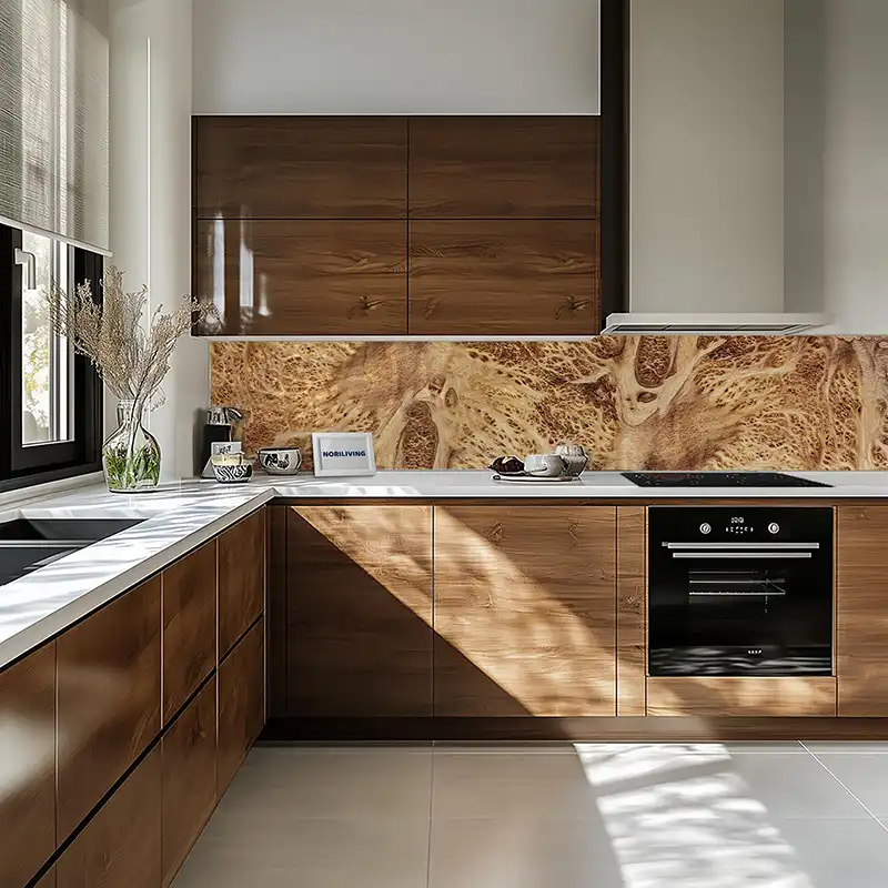 Fliesenspiegel Alu Wurzelmaserung Holzfurnier - Maserholz Dekor 455