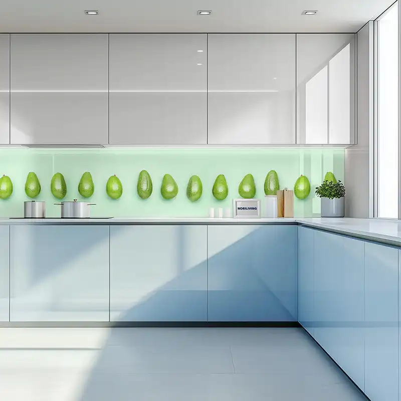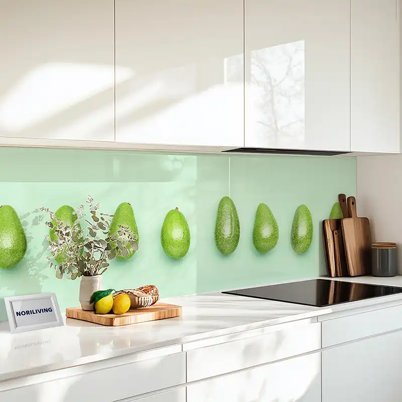 Produktinformationen "Küchenrückwand Alu Avocado mit grünem Hintergrund 129"