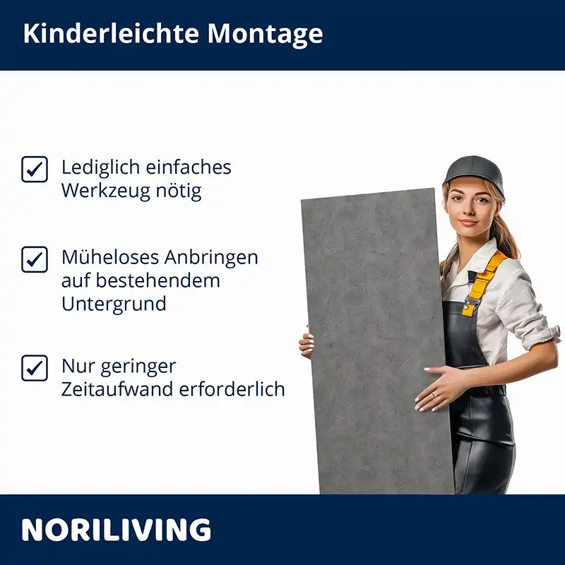 - Weniger Staub, Lärm, Schmutz und Abfall im Vergleich zur herkömmlichen Fliesenverlegung