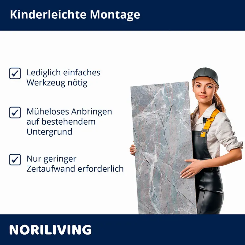 - Weniger Staub, Lärm, Schmutz und Abfall im Vergleich zur herkömmlichen Fliesenverlegung