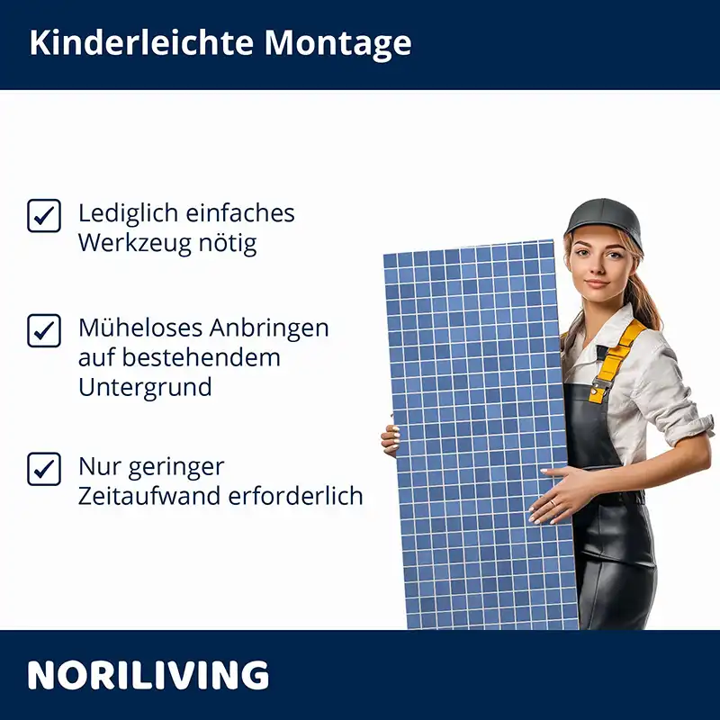 - Weniger Staub, Lärm, Schmutz und Abfall im Vergleich zur herkömmlichen Fliesenverlegung