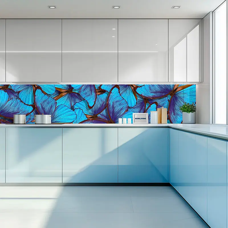 Produktinformationen "Küchenrückwand Alu Hellblaue Tropenschmetterlinge 060"