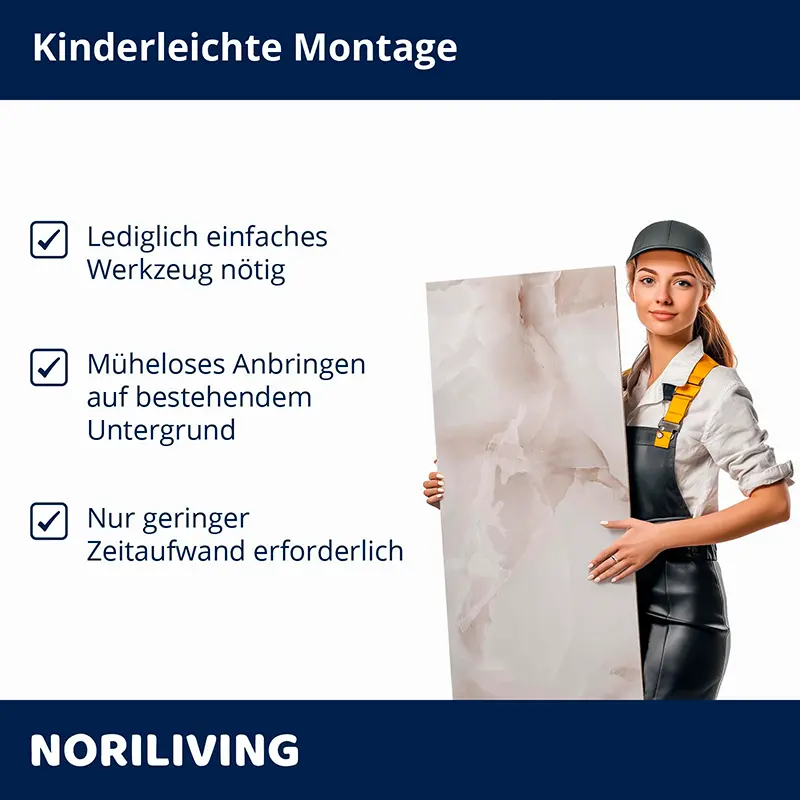 - Weniger Staub, Lärm, Schmutz und Abfall im Vergleich zur herkömmlichen Fliesenverlegung