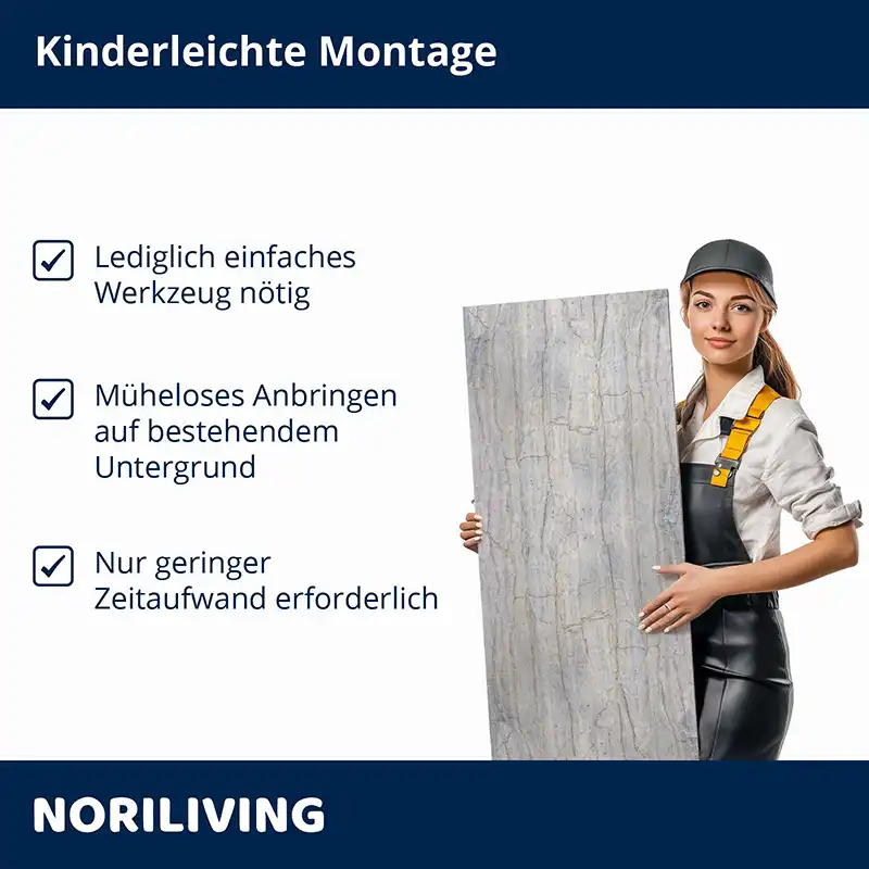 - Weniger Staub, Lärm, Schmutz und Abfall im Vergleich zur herkömmlichen Fliesenverlegung