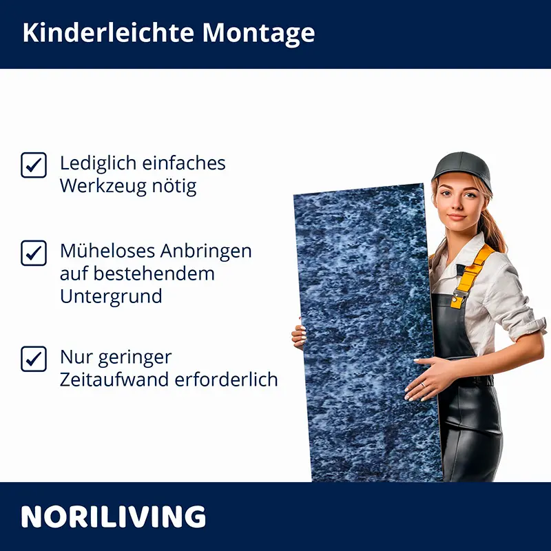 - Weniger Staub, Lärm, Schmutz und Abfall im Vergleich zur herkömmlichen Fliesenverlegung