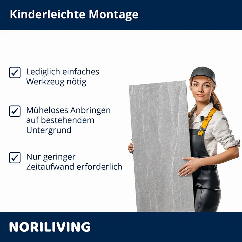 - Weniger Staub, Lärm, Schmutz und Abfall im Vergleich zur herkömmlichen Fliesenverlegung