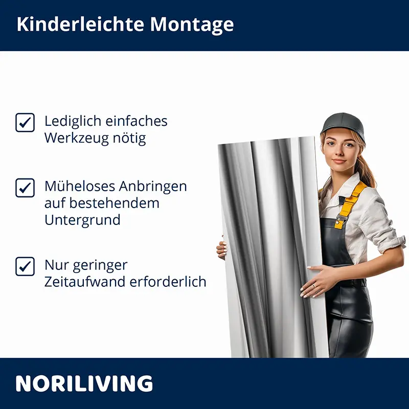 - Großflächige Anbringung – nahezu fugenlos