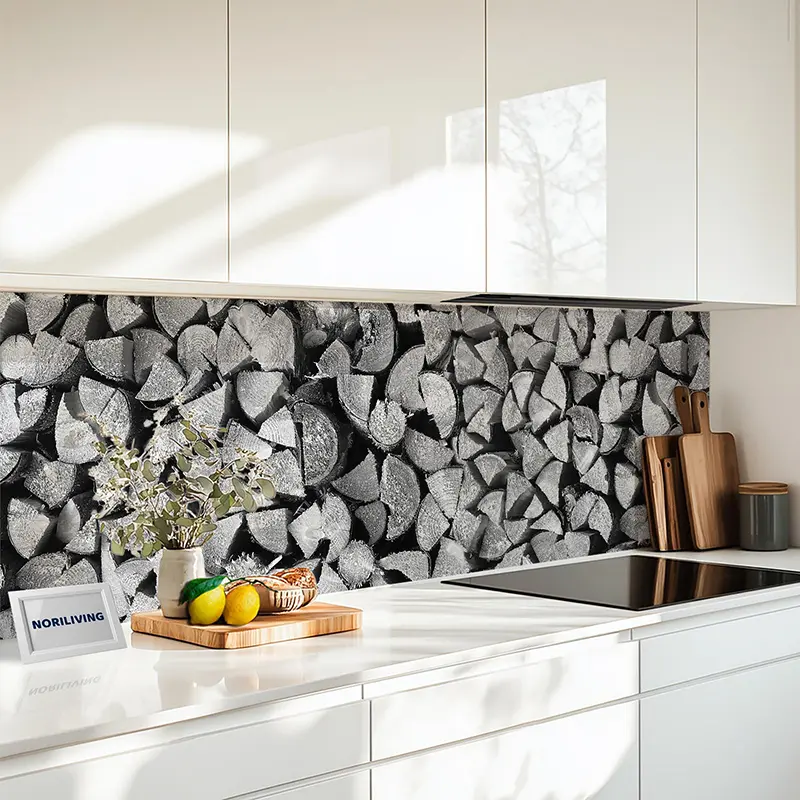 Küchenrückwand Echtglasoptik Profiline Brennholz 435 schwarz-weiß