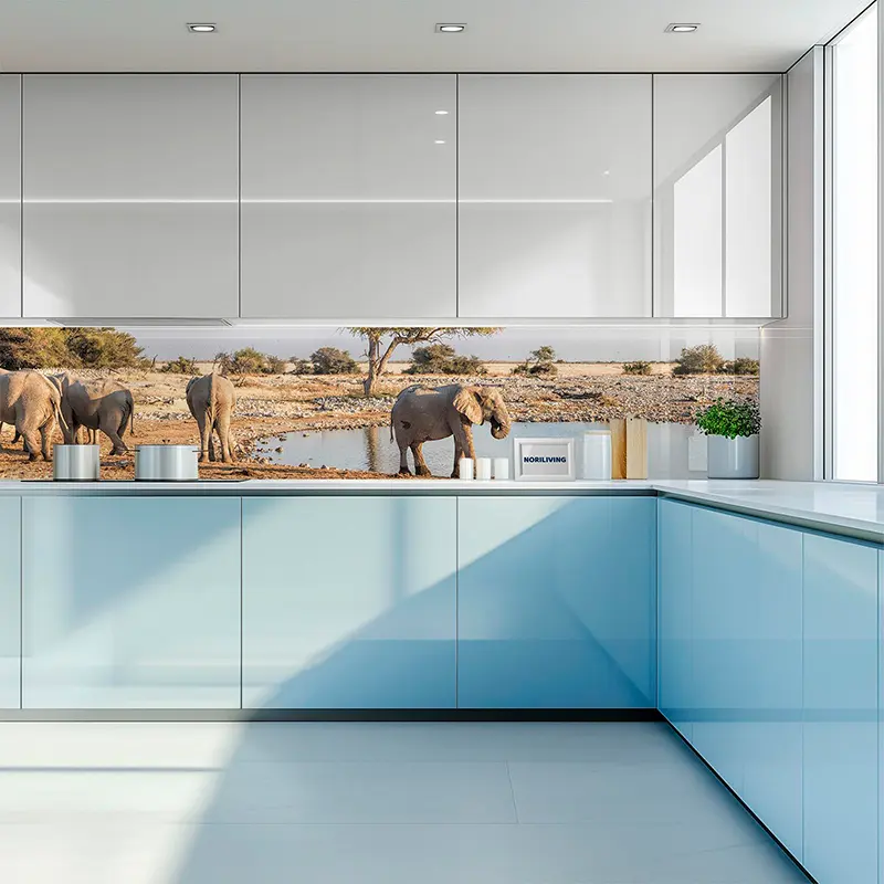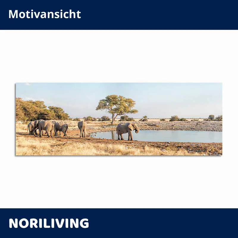Produktinformationen "Küchenrückwand Echtglasoptik Profiline Elefanten an einer Wasserstelle in der Savanne 378"