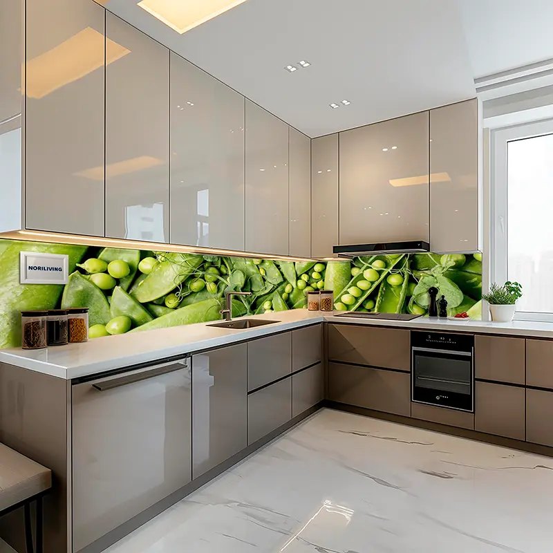 Produktinformationen "Küchenrückwand Echtglasoptik Profiline Frische grüne Erbsen in Schoten 178"