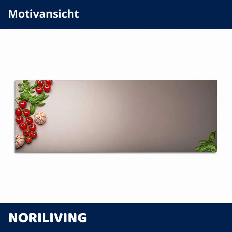 Produktinformationen "Küchenrückwand Echtglasoptik Profiline Frische Kirschtomaten mit Knoblauch und Basilikum 862"