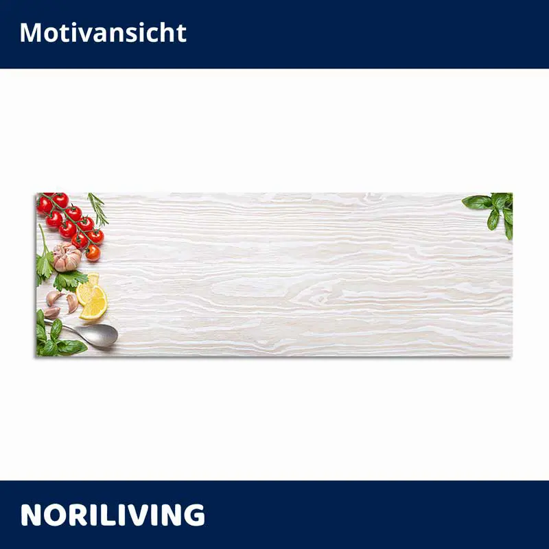 Produktinformationen "Küchenrückwand Echtglasoptik Profiline Frische Zutaten auf hellem Holzbrett 863"