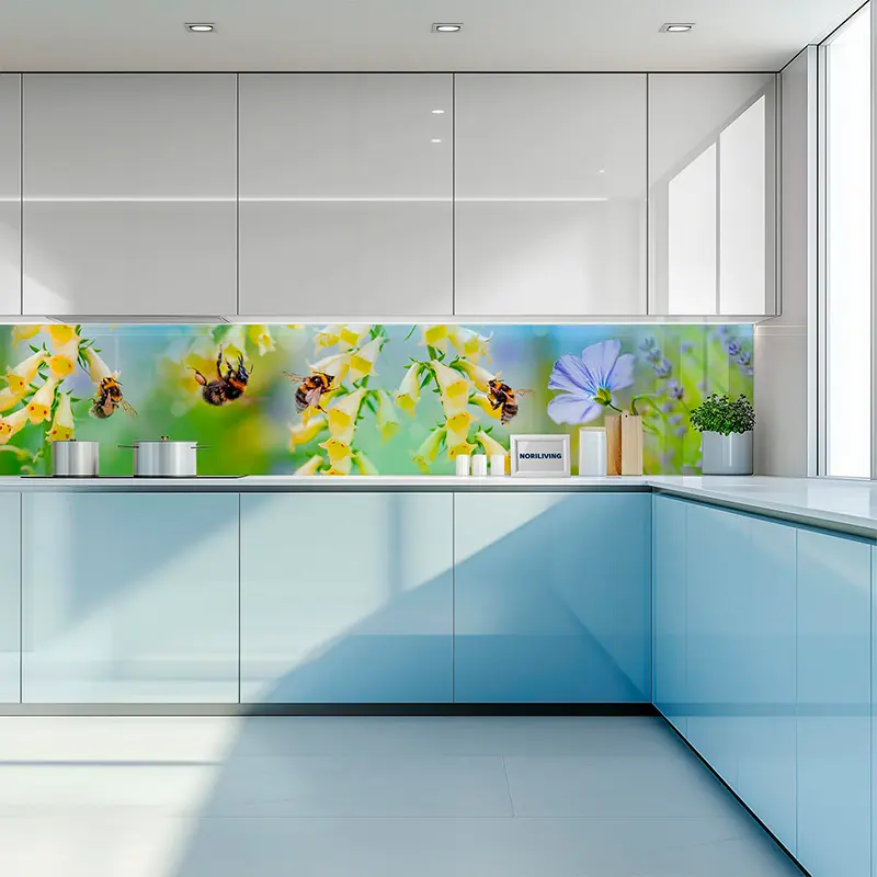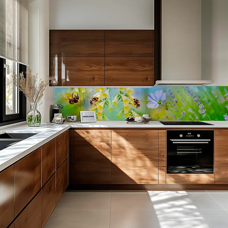 Produktinformationen "Küchenrückwand Echtglasoptik Profiline Frühlingshafte Blumenwiese mit Bienen 396"