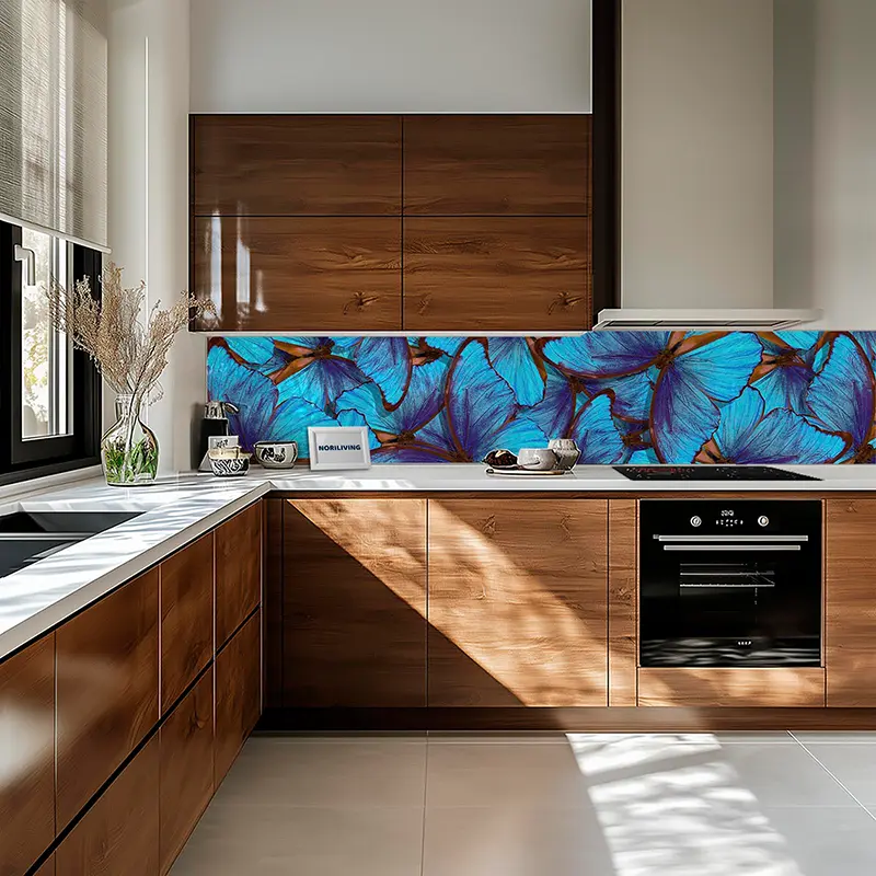 Küchenrückwand Echtglasoptik Profiline Hellblaue Tropenschmetterlinge 060