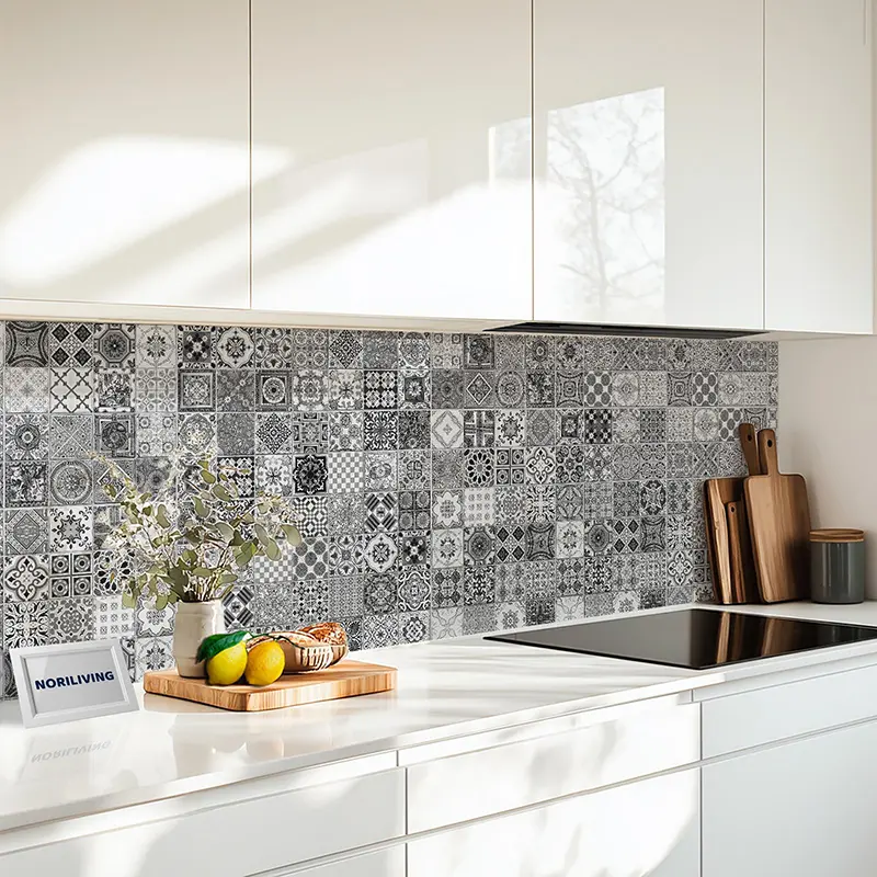 Küchenrückwand Echtglasoptik Profiline Keramikfliesenmuster aus Portugal 264 schwarz-weiß