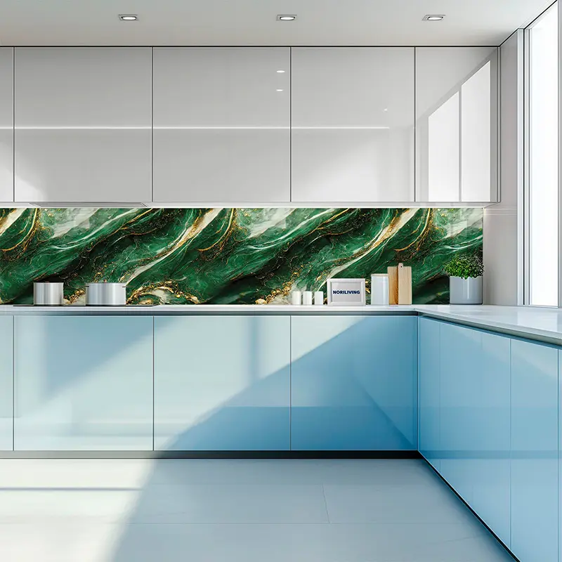 Beschichten Sie Ihre Wand oder Fliesen mit einer ausgewählten Aluverbundplatte und geben Sie Ihrer Küche das gewisse Etwas.